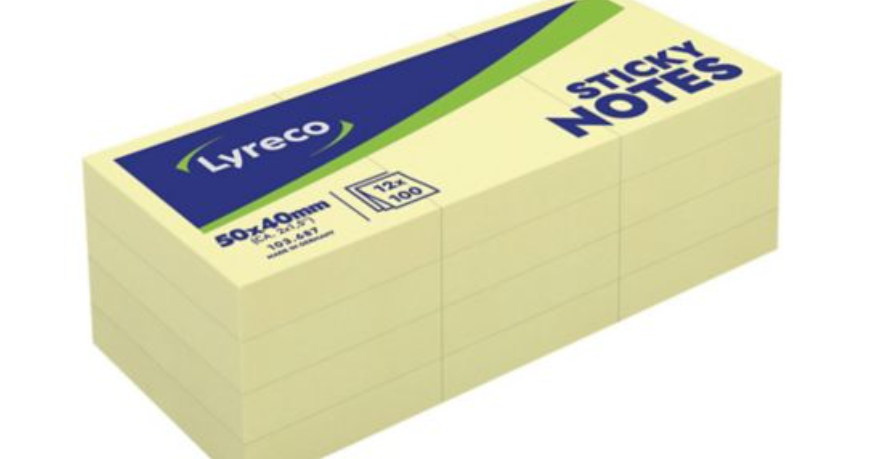 Karteczki samoprzylepne LYRECO  50×40 mm, w opakowaniu 12 bloczków